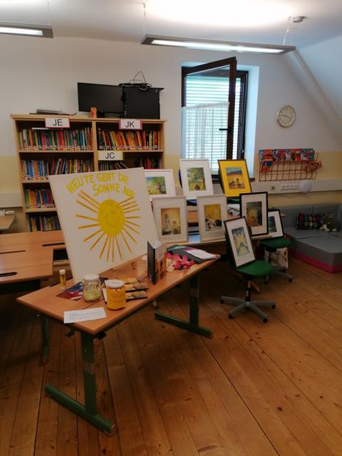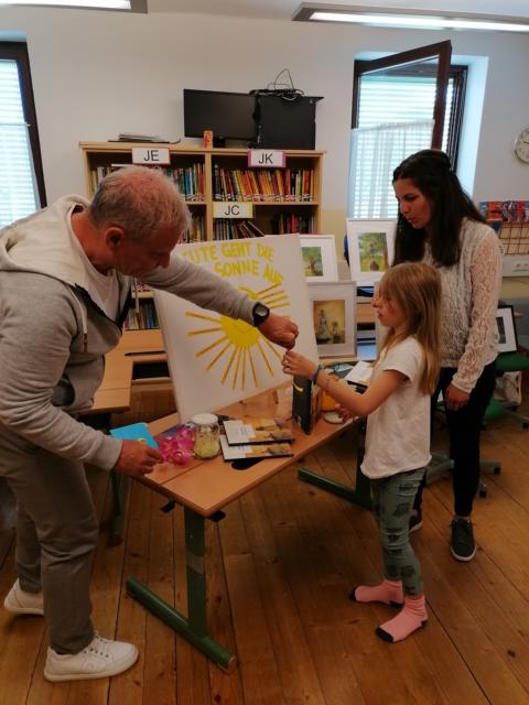 Die Buchautorin Angela Schintler besuchte die Schüler und Schülerinnen der 1. und 3. Klasse um ihr neues Buch mit dem Titel „Heute geht die Sonne auf“ zu präsentieren. Stefan Breschan von der Firma Breschan in Feldkirchen begleitete die Autorin. Abwechselnd lasen sie kurze Kapitel aus dem Buch vor. Die Kinder konnten die liebevoll gestalteten Bilder bestaunen. Zum Schluss durfte jedes Kind einen Sonnenstrahl mit lieben Worten darauf ziehen und an die Sonne am Bild kleben. Das Bild bleibt als Erinnerung an diese schöne Buchpräsentation in der Schule.