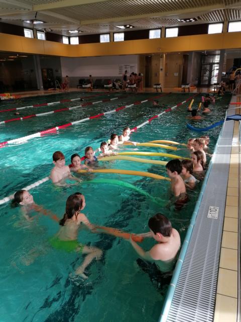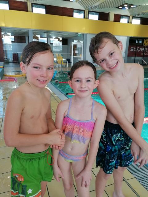 Die Schülerinnen und Schüler der 1. und 2. Klasse verbrachten im Jänner 3 Schwimmtage im Hallenbad in St. Veit. Aufgrund langjähriger Erfahrung hat das Team von Freds Swim Academy Austria ein 3-stufiges Schwimmlernsystem entwickelt, mit dem Kinder einen perfekten Schwimmstil erlernen können. Auch die Schüler unserer Schule wurden je nach Alter und Lernfortschritt in Gruppen eingeteilt und konnten so mit aufbauender Technikschulung zum perfekten Schwimmstil gelangen. So wurde die Basis für das erfolgreiche Schwimmenlernen gelegt und eine lebenslange positive Beziehung zum Element Wasser geschaffen. Die Schwimmtrainer Doris, Felix, Michi und Ina vom Verein Wasserfrosch haben die Kinder mit sehr viel Freude und Engagement zum Schwimmen motiviert und so konnten alle teilnehmenden SchülerInnen die Schwimmprüfungen mit Erfolg ablegen!