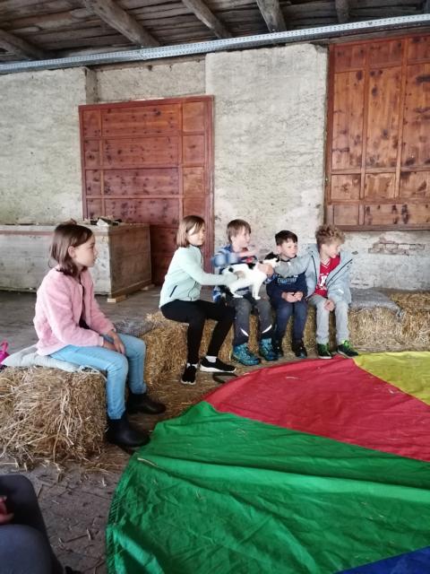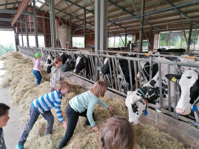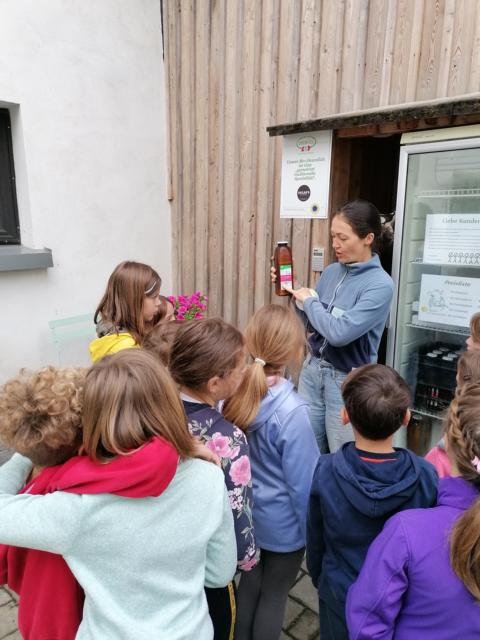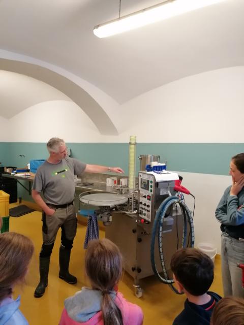Die Kinder der 2. Klasse wurden von Katharina und Clemens Dörfler vom Biohof Gut Grosshard eingeladen, um einen Vormittag am Bauernhof zu verbringen und die Arbeiten dort kennen zu lernen. Dieser Hof wird bereits in der 5. Generation bewirtschaftet. Der artgerechte, respektvolle Umgang mit den Kühen und die Bewirtschaftung von Grund und Boden nach streng biologischen Richtlinien sind wichtige Voraussetzungen für die Erzeugung von hochqualitativen Produkten am Hof. Die Kinder durften beim Füttern der Kühe helfen, sich das automatisierte Melksystem ansehen, sowie bei der Einfüllung des Joghurts dabei sein. Das selbstgemachte Joghurt schmeckte allen Schülern. Katharina führte die Kinder über den Hof, beantwortete alle Fragen und nach einer gesunden Jause gab es zum Abschluss noch einen Besuch bei den kleinen Kälbern. Ein wunderschöner Vormittag ging leider viel zu schnell zu Ende. Vielen Dank an die Familie Dörfler für ihre Bemühungen.