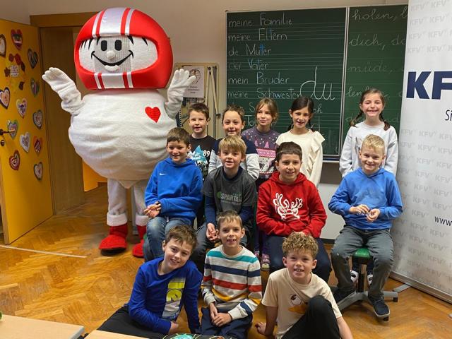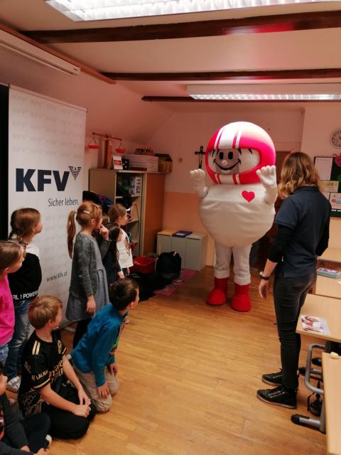 Kürzlich besuchten uns Polizisten von der Polizeiinspektion Feldkirchen, gemeinsam mit Herrn Stranig von der Firma Auto Stranig, zum Thema Verkehrssicherheit, um den Kindern anschaulich den „Toten Winkel“ beim Auto zu erklären. Außerdem lernten die Kinder „Helmi“, den Experten für Verkehrssicherheit kennen. Bei diesem Besuch ging es um richtiges Angurten, das sichere Queren der Straße, Sichtbarkeit im Straßenverkehr und auch die Vorteile des Helm-Tragens wurden mit der Puppe Sokrates, Übungsspielen und Bastel- sowie Malanleitungen veranschaulicht. Diese Helmi-Aktion wurde vom Kuratorium für Verkehrssicherheit durchgeführt.