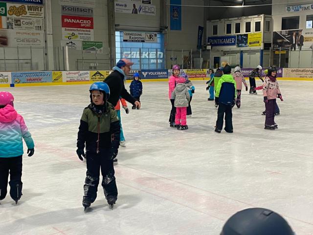 Die Kinder aller 4 Klassen verbrachten gemeinsam mit ihren Lehrerinnen einen sportlichen Vormittag beim Eislaufen in der Eishalle in Steindorf. Zuerst gab es ein Falltraining, dann verschiedene Übungen zur Fahrsicherheit und anschließend einige Spiele. Die zwei Trainer motivierten die Kinder sehr uns so verging die Zeit leider viel zu schnell.